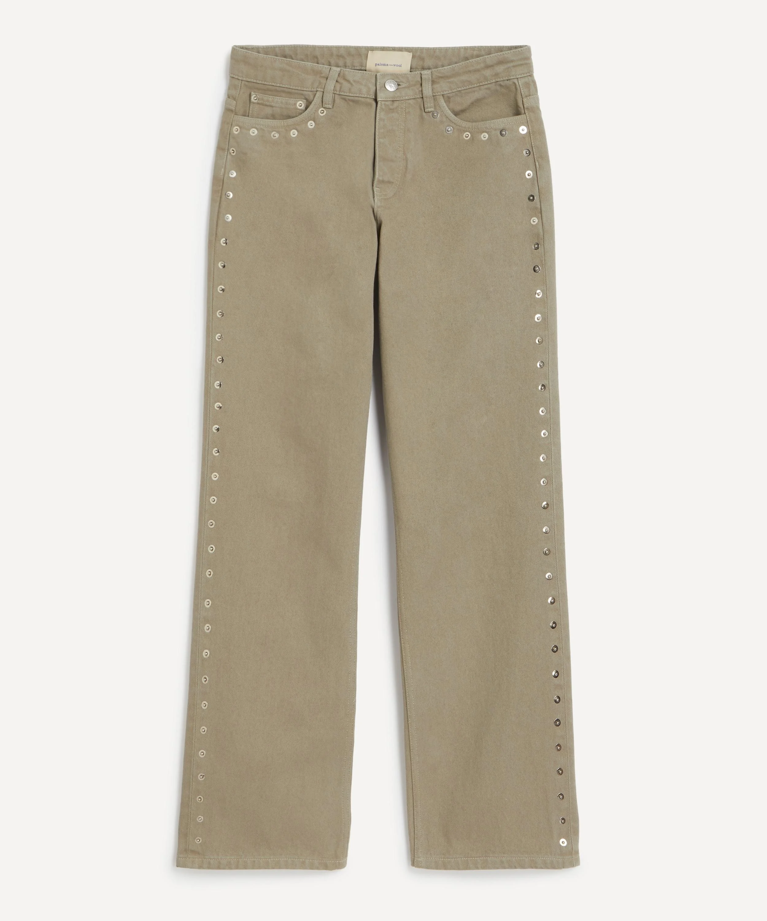 DETAILS Cotton denim trousers Low-rise Loose-fit Button fastening Belt loops 5-pocket construction Studded detail Made in Spain SIZE & FIT 176cm/5'9"; Chest: 76.5cm; Waist: 61.5cm; Hip: 99cm and wears a size 8 COMPOSITION & CARE 100% Cotton Gentle wash max. 30ºC