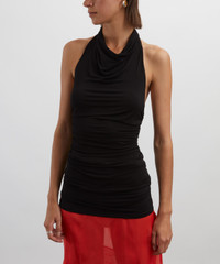 DETAILS Cupro top Fitted silhouette Sleeveless Halter neckline Open back Gathered sides SIZE & FIT 176cm/5'9"; Chest: 76.5cm; Waist: 61.5cm; Hip: 99cm and wears a size S COMPOSITION & CARE 98% Cupro; 2% Elastane Hand wash