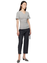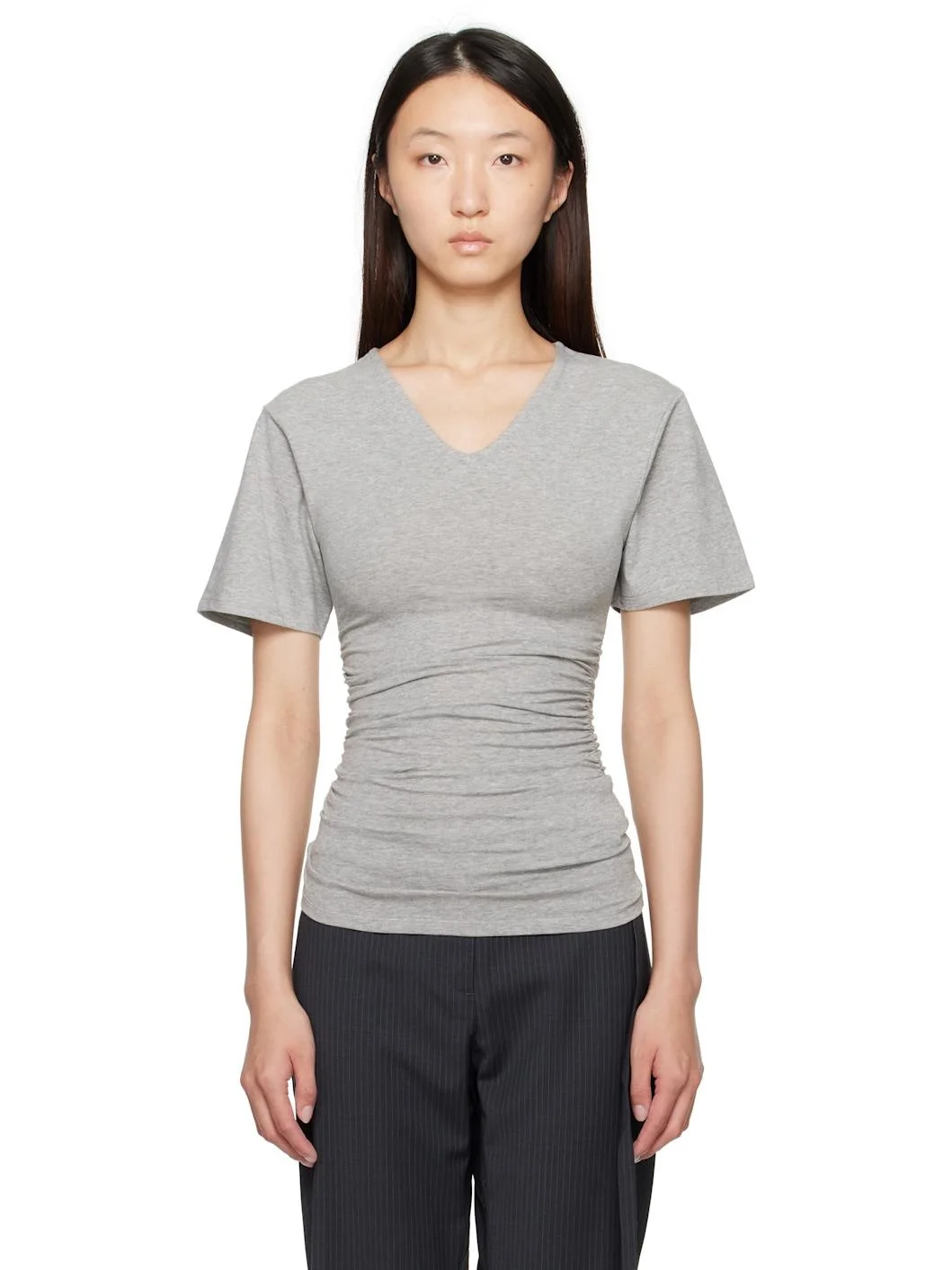 Stretch organic cotton jersey T-shirt. · V-neck · Ruching at side seams Supplier color: Grey 94% organic cotton, 6% elastane. Made in Portugal 252648F110025