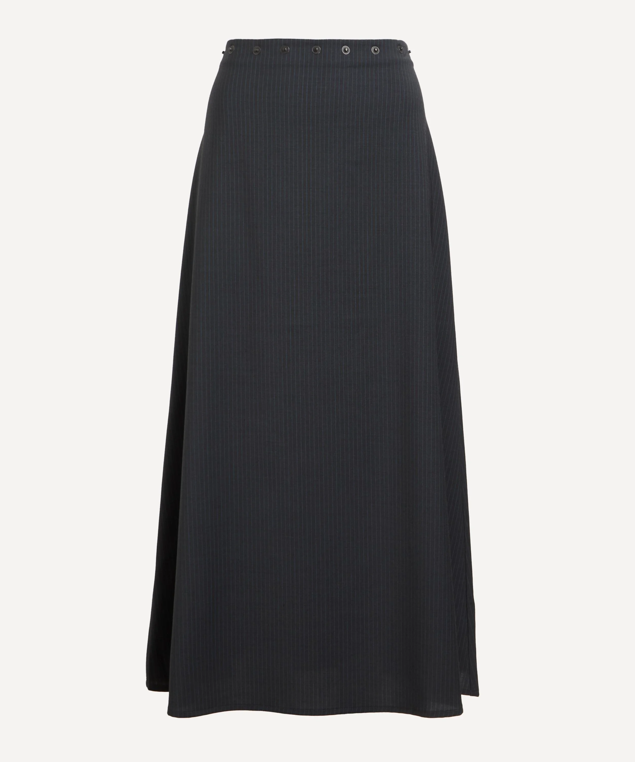 DETAILS Midi skirt Pinstripe suiting fabric Low–rise Flared silhouette Snap-studded waist SIZE & FIT 176cm/5'9"; Chest: 76.5cm; Waist: 61.5cm; Hip: 99cm and wears a size 8 COMPOSITION & CARE 54% Polyester; 44% Wool; 2% Elastane Gentle wash max. 30ºC