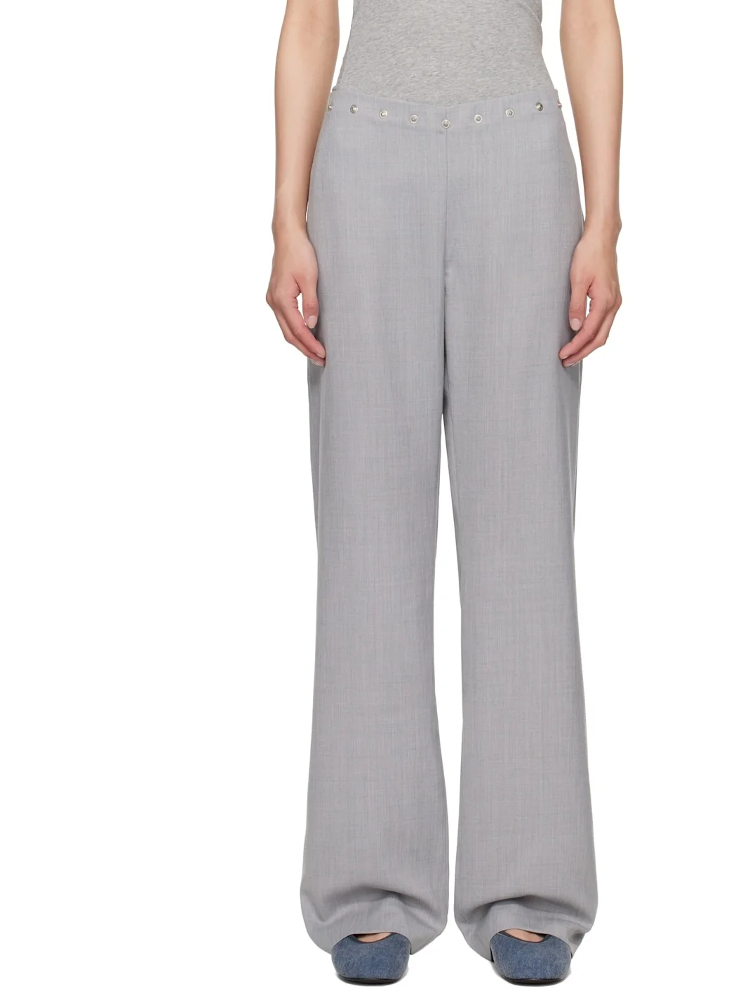 Recycled polyester- and merino wool-blend twill trousers. · Rivets at waistband · Concealed zip closure at side · Button tab at inner waist Supplier color: Light grey 55% recycled polyester, 25% merino wool, 20% linen. Made in Spain 252648F087004
