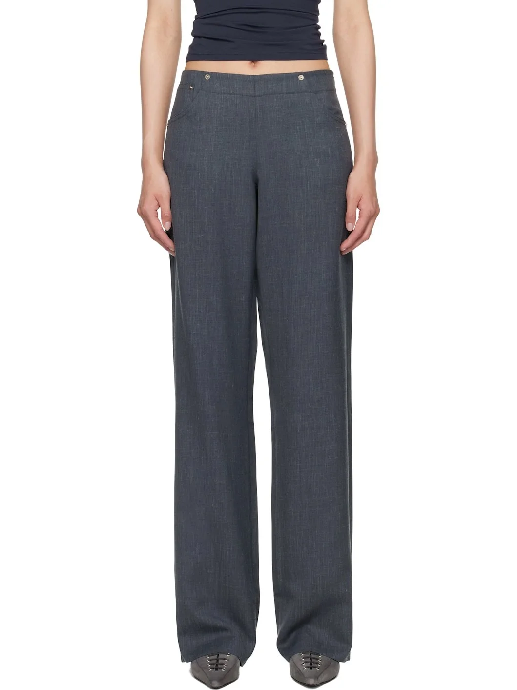 Recycled polyester- and merino wool-blend twill trousers. · Five-pocket styling · Rivets at front · Concealed zip closure at side · Button tab at inner waist · Mulesing-free wool Supplier color: Grey 55% recycled polyester, 25% merino wool, 20% linen. Made in Spain 252648F087001