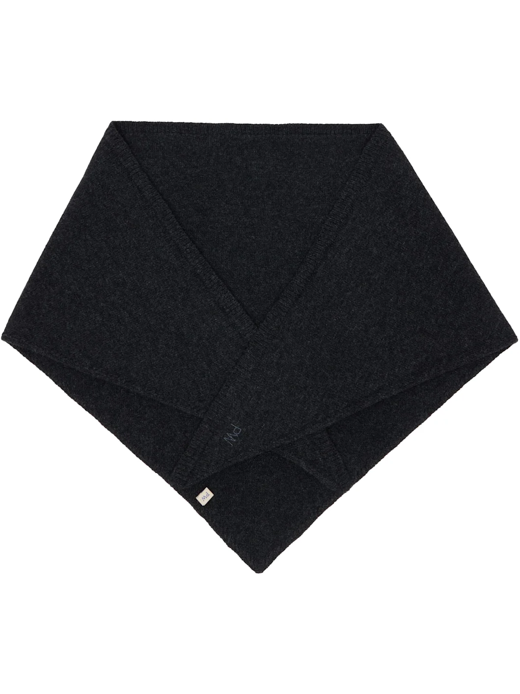 Triangular knit wool scarf. · Mulesing-free wool · Rib-knit edges throughout · Logo embroidered at face · Logo flag at back face · L46" x W18.25" Supplier color: Dark Grey 100% wool. Made in Spain 261648F028010