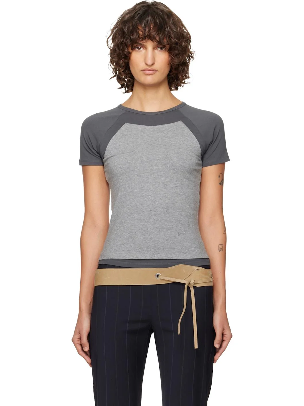 Stretch organic cotton jersey T-shirt. · Layered construction · Crewneck · Logo embroidered at front · Raglan sleeves Supplier color: Grey 94% organic cotton, 6% elastane. Made in Portugal 261648F110010