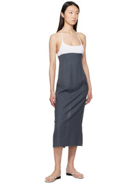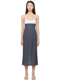 Recycled polyester- and merino wool-blend twill midi dress. · Scoop neck · Knit organic cotton panel at chest · Concealed zip closure at side · Self-tie halter strap · Vent at back hem · Mulesing-free wool Supplier color: Grey Body: 55% recycled polyester, 25% merino wool, 20% linen. Trim: 100% organic cotton. Made in Spain 252648F054003