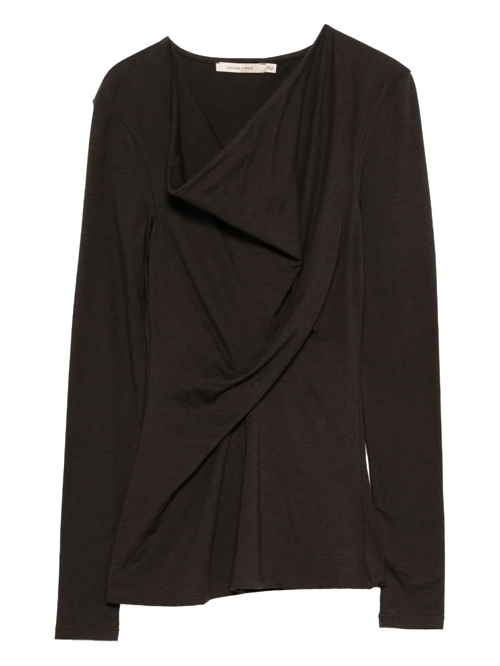 Junco long-sleeve top Highlights - Brown - Draped detailing - Long sleeves - V-neck - Button detail Imported Composition Organic Cotton 75%, Wool 19%, Elastane 6% SIZE & FIT Model measurements Height 5 ft 10 in(1.78 m) Bust/Chest 33.46 in(85 cm) Hips 36.22 in(92 cm) Waist 23.22 in(59 cm) Washing instructions Hand Wash