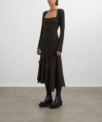 DETAILS Wool dress Queen Anne neckline Slim fit Asymmetric square neckline Long sleeves with split fuss Flowing skirt Side slit SIZE & FIT Model is 176cm/5'8"; Chest: 76.5cm; Waist: 61.5cm; Hip: 88cm and wears a size S COMPOSITION & CARE 86% Wool; 9% Polyamide; 5% Elastane Dry clean