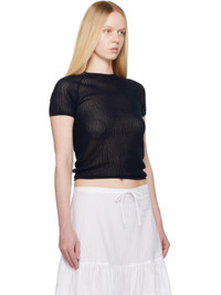 Sheer rib-knit Mako cotton T-shirt. · Crewneck · Raglan sleeves Supplier color: Navy 100% cotton. Made in Estonia 252648F110014