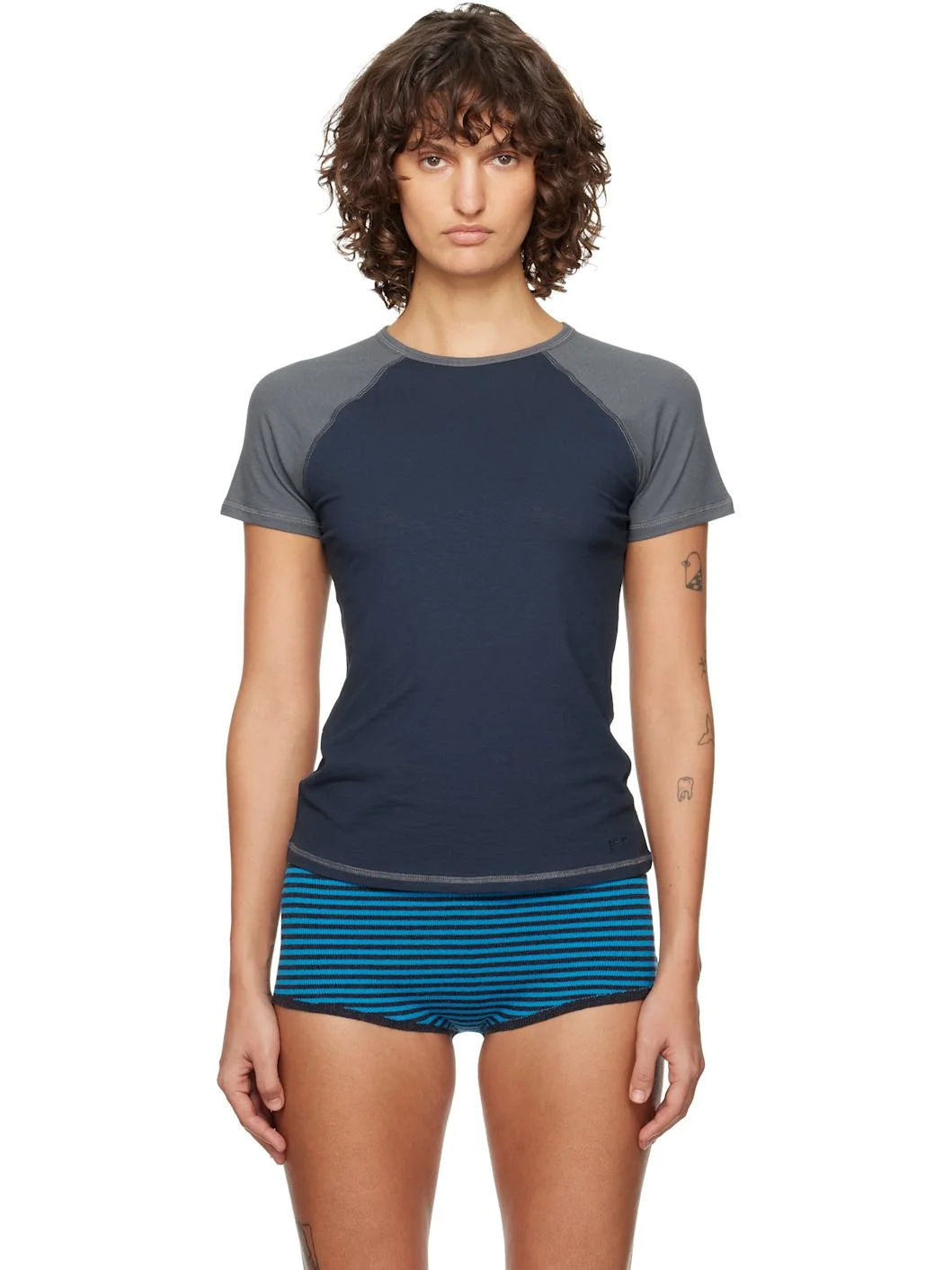 Stretch organic cotton jersey T-shirt. · Crewneck · Raglan sleeves · Contrast overlock stitching in gray Supplier color: Navy 94% organic cotton, 6% elastane. Made in Portugal 261648F110006