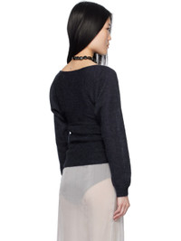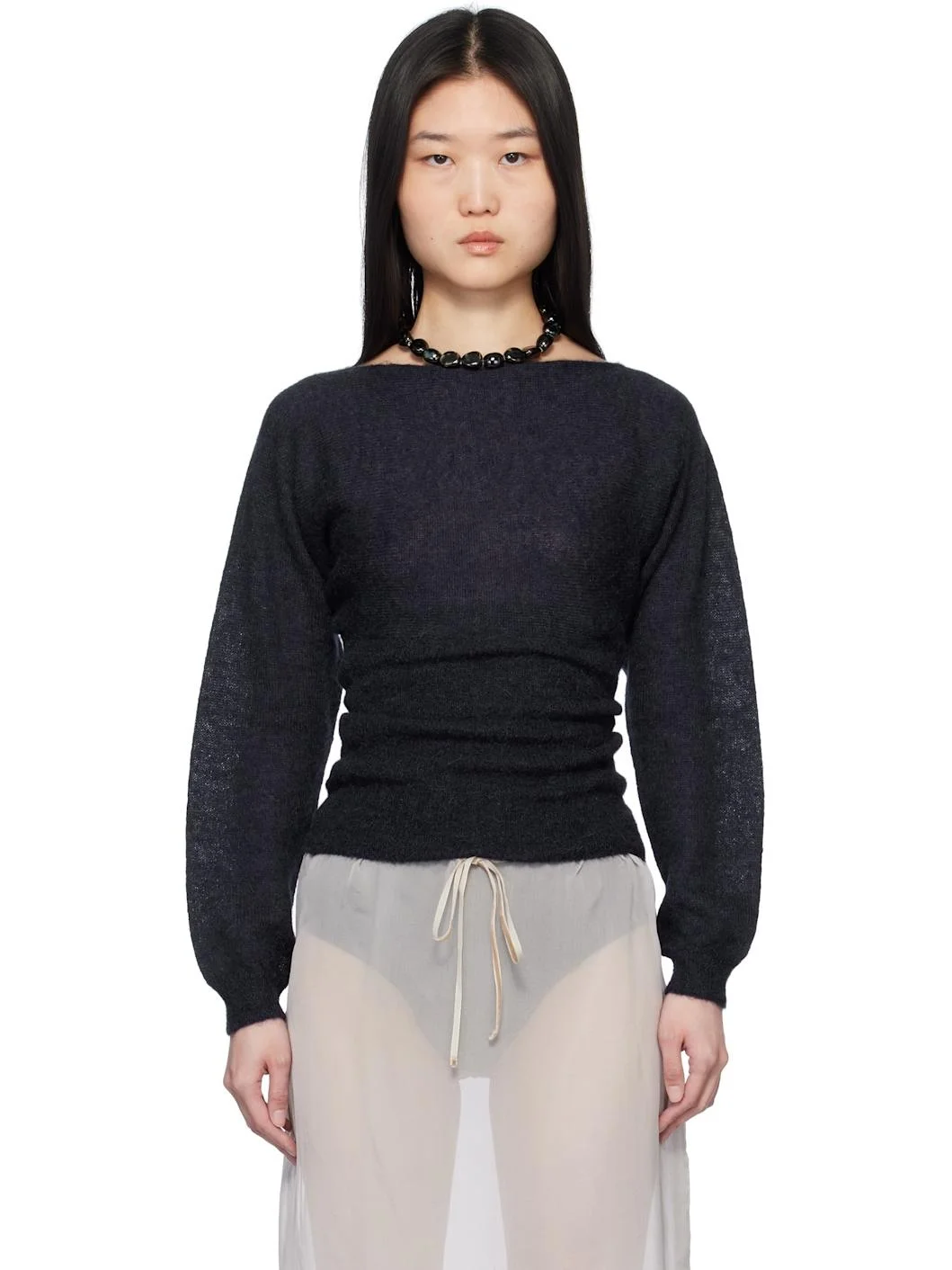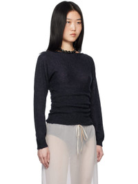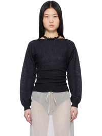 Brushed knit mohair- and alpaca-blend sweater. · Boatneck · Rib-knit hem and cuffs Supplier color: Navy 35% mohair, 35% alpaca, 30% polyamide. Made in Italy 251648F096001