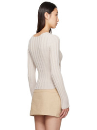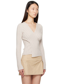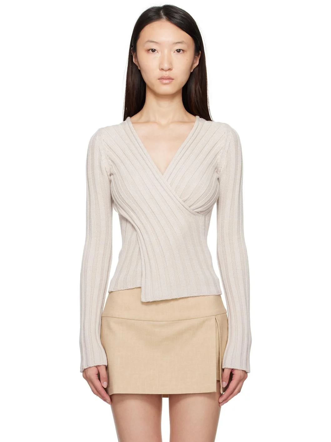 Rib-knit extrafine merino wool sweater. · Can be worn front to back · Wrap construction · V-neck · Mulesing-free wool Supplier color: Off-white 100% extrafine merino wool. Made in Spain 252648F100000