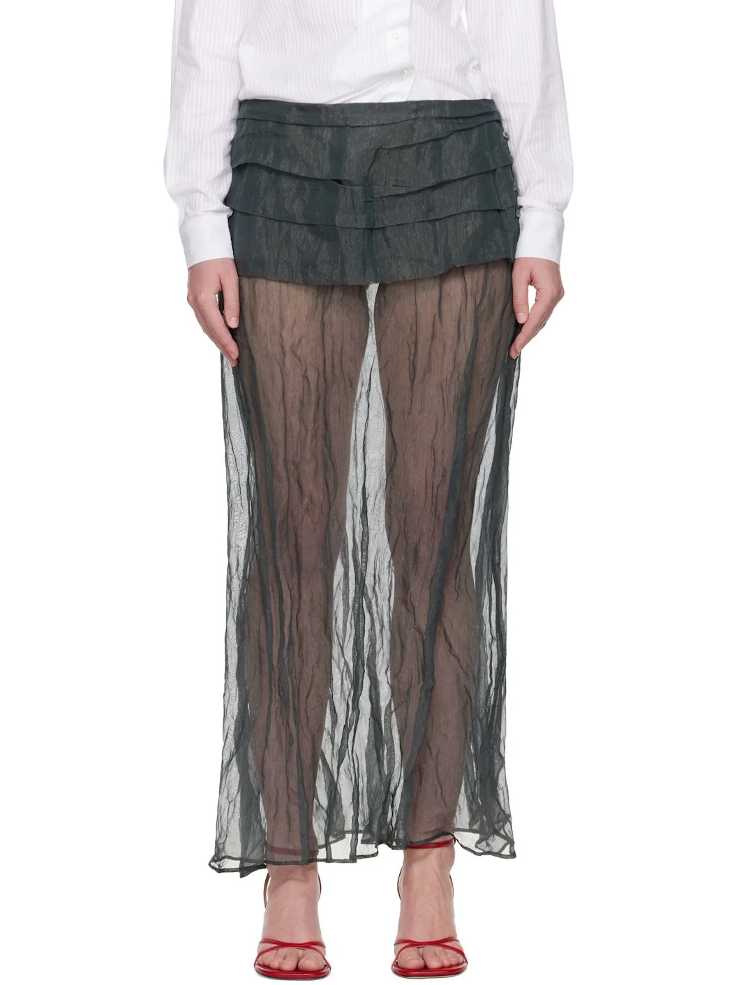 Sheer crinkled cotton-blend organza maxi skirt. · Pleats at layered waistband · Button and zip closure at side seam · Mother-of-pearl hardware Supplier color: Dark grey 59% cotton, 31% metallic fibre, 10% silk. Made in Spain 252648F093003