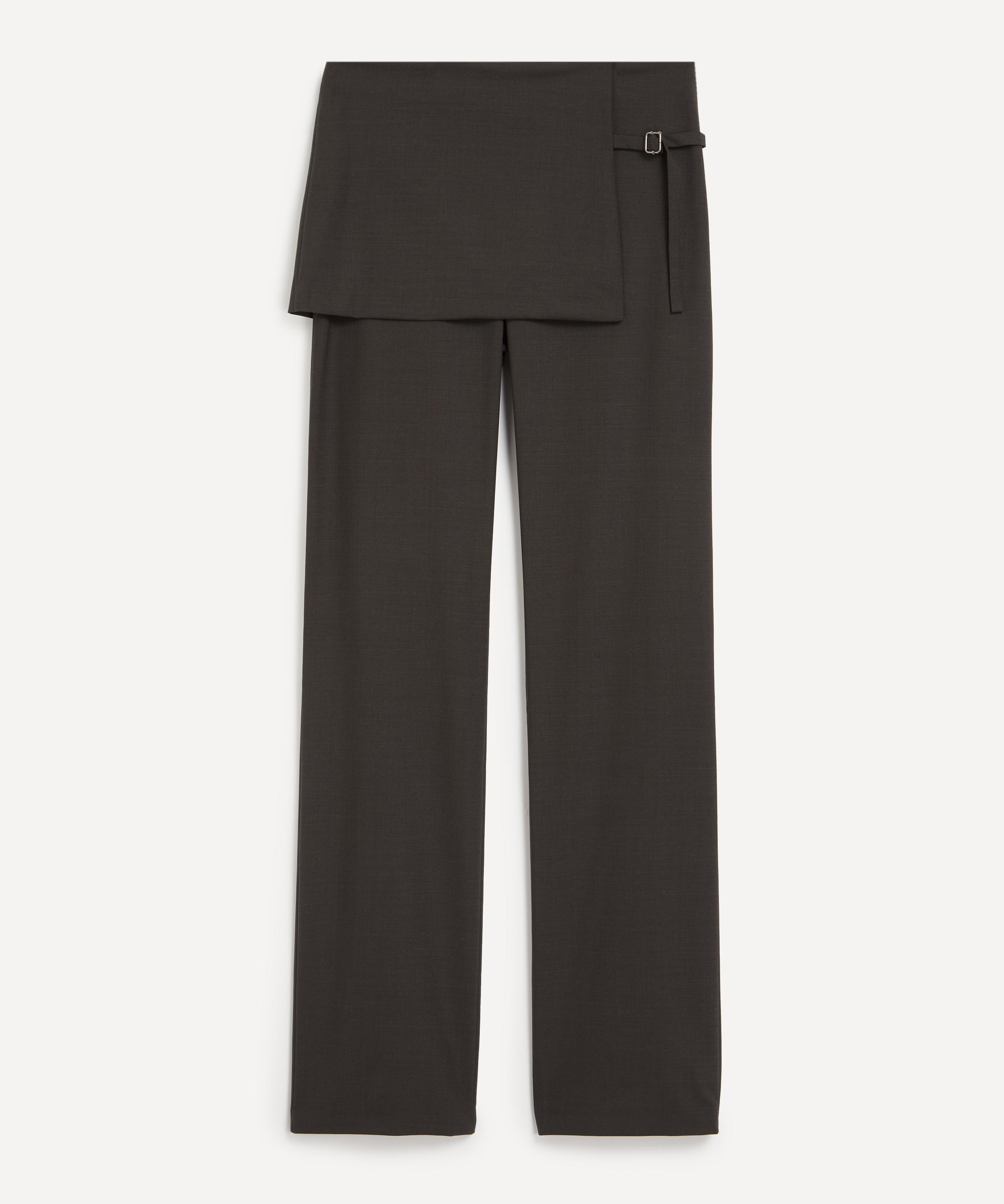 DETAILS Suiting trousers Low-rise Straight-leg Overlapping mini hip skirt Side buckle attachment Made in Spain SIZE & FIT 176cm/5'9"; Chest: 76.5cm; Waist: 61.5cm; Hip: 99cm and wears a size 8 COMPOSITION & CARE 53% Polyester; 43% Wool; 4% Elastane Gentle wash max. 30ºC