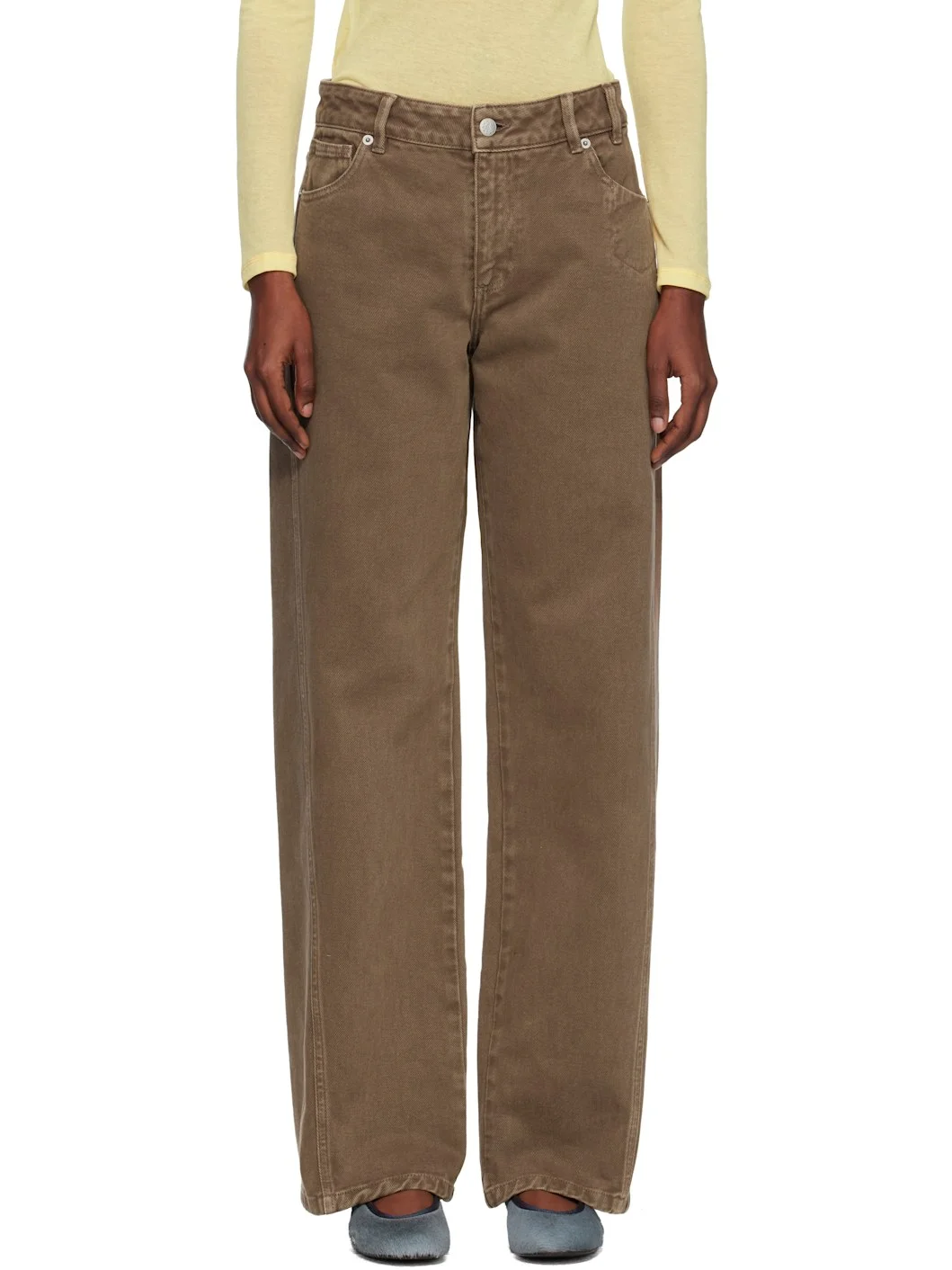 Non-stretch organic cotton denim jeans. · Garment-dyed · Fading throughout · Belt loops · Six-pocket styling · Zip fly · Twisted outseams · Logo-engraved silver-tone hardware Supplier color: Brown 100% organic cotton. Made in Portugal 261648F069002