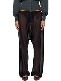 Sheer silk chiffon trousers. · Ruffled trim at elasticized waistband and cuffs · Dropped inseam Supplier color: Black 100% silk. Made in Spain 261648F086000