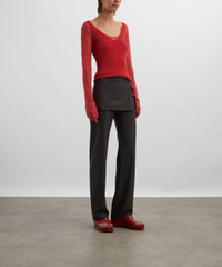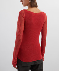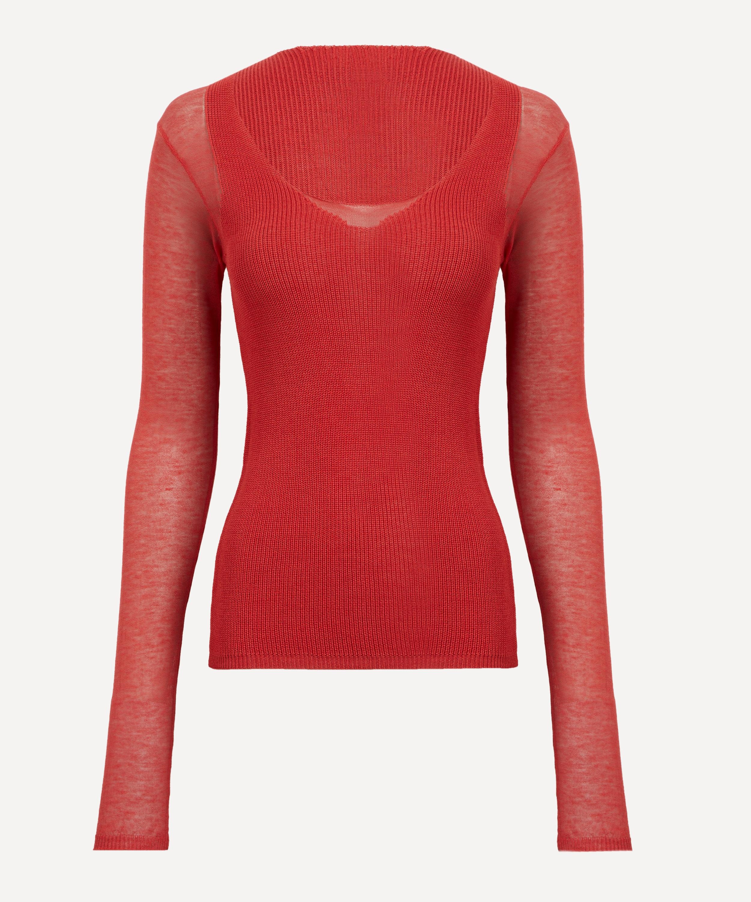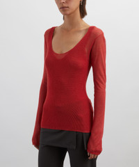 DETAILS Double-layered top Knitted top Mesh, transparent layer Long sleeves Scoop neckline Made in Spain SIZE & FIT 176cm/5'9"; Chest: 76.5cm; Waist: 61.5cm; Hip: 99cm and wears a size S COMPOSITION & CARE 87% TENCEL™ Lyocell; 13% Polyamide Hand wash
