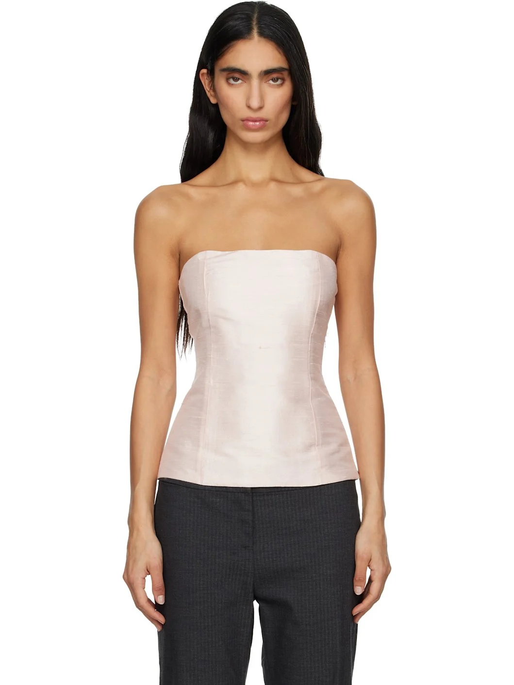 Paneled plain-woven silk top. · Strapless construction · Straight neck · Concealed zip closure at side seam · Lace-up fastening at back · Fully lined Supplier color: Pink 100% silk. Made in Spain 261648F111012