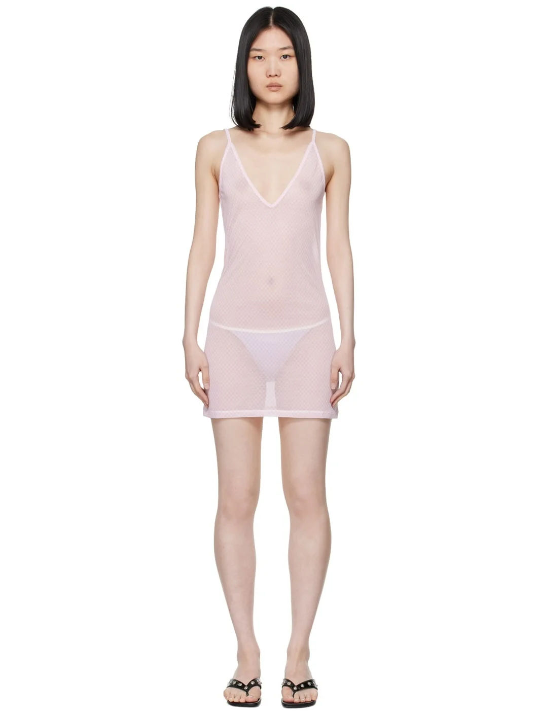 Semi-sheer organic cotton- and nylon-blend jersey dress. Check pattern throughout. · V-neck · Logo embroidered at hem · Fixed spaghetti straps · Low back · Unlined Supplier color: Pink 70% organic cotton, 30% polyamide. Made in Portugal 242648F052004
