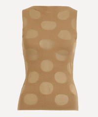 DETAILS Cotton top Semi-sheer dotted jacquard Fitted silhouette Sleeveless Boat neckline Made in Spain SIZE & FIT 176cm/5'9"; Chest: 76.5cm; Waist: 61.5cm; Hip: 99cm and wears a size S COMPOSITION & CARE 87% Cotton; 13% Polyamide Hand wash