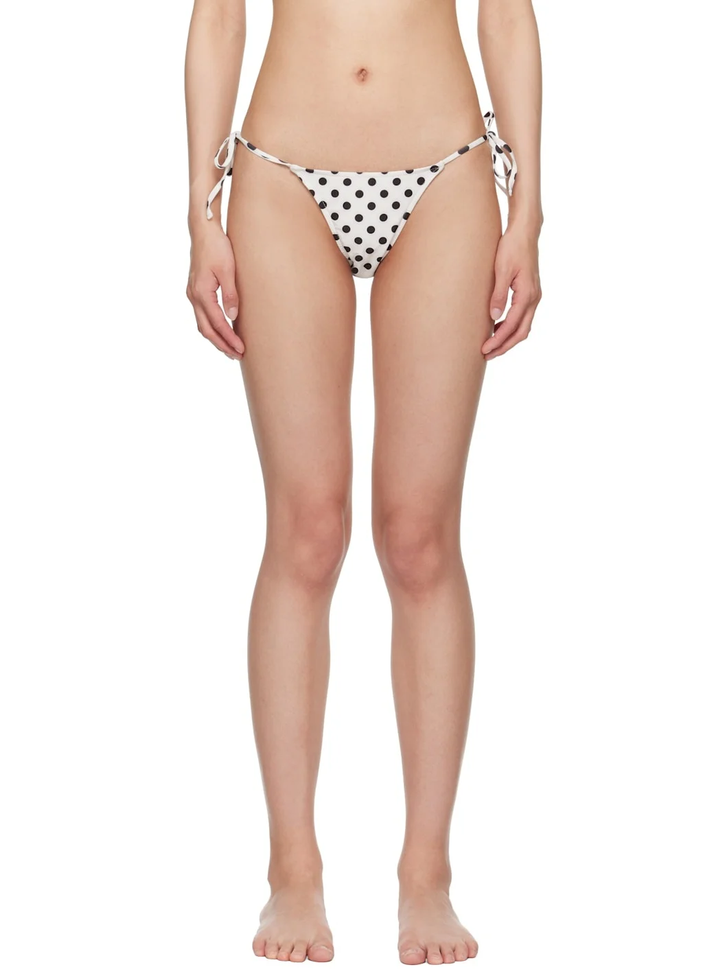 Stretch recycled polyester jersey bikini bottom. Polka-dot pattern printed throughout. · Self-tie fastening at sides · Logo and text printed at back · Fully lined Supplier color: White 85% recycled polyester, 15% elastane. Made in Spain 252648F105002