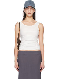 Stretch organic cotton jersey tank top. Sheer recycled polyester mesh overlay. · Scoop neck · Ruching, gathering, and raw edges at overlay Supplier color: White Body 1: 94% organic cotton, 6% elastane. Body 2: 100% recycled polyester. Made in Portugal 251648F111018