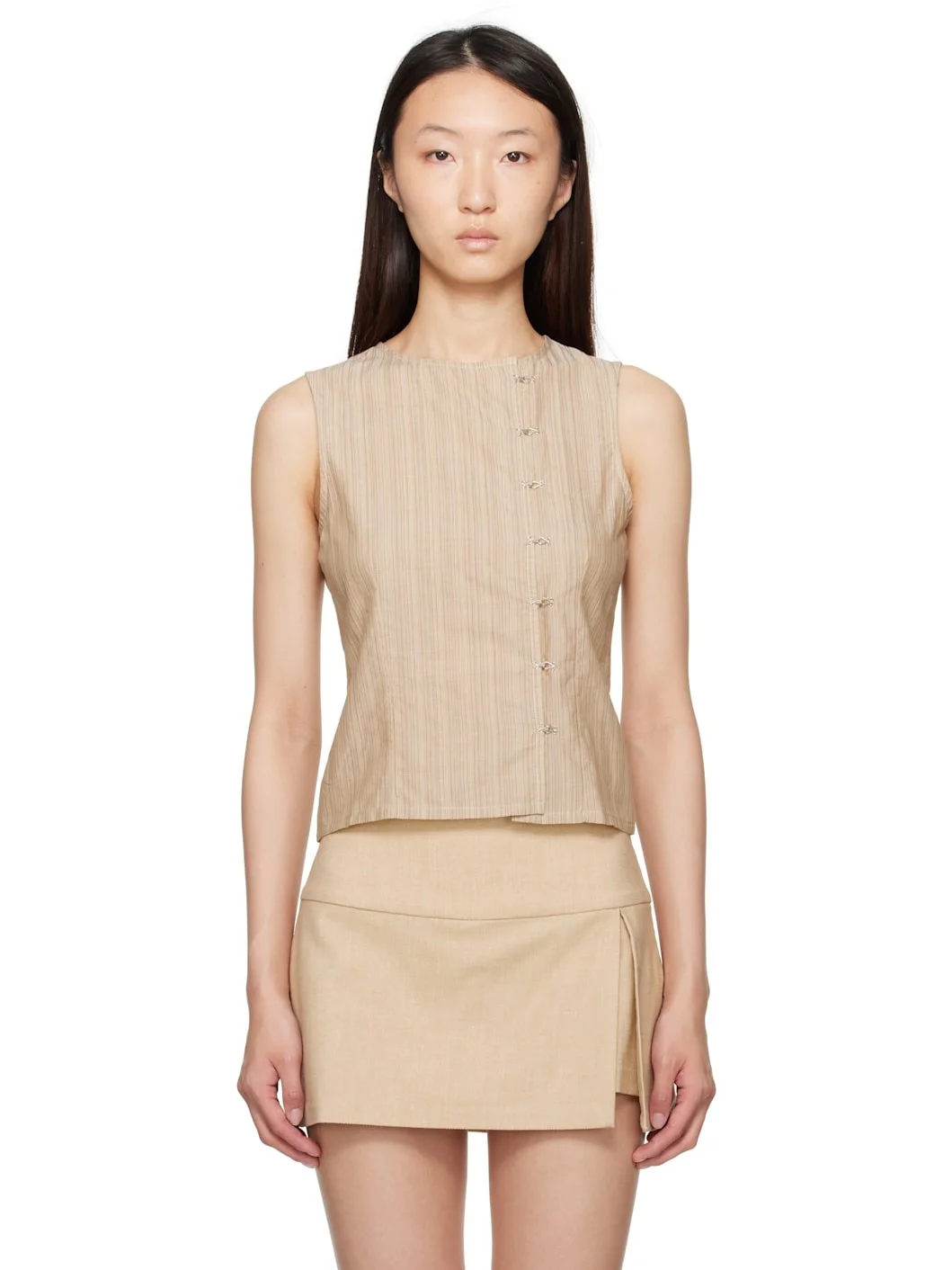 Plain-woven organic cotton-blend top. Striped throughout. · Round neck · Offset hook-eye closure Supplier color: Ecru 93% organic cotton, 7% cotton. Made in Spain 252648F111018