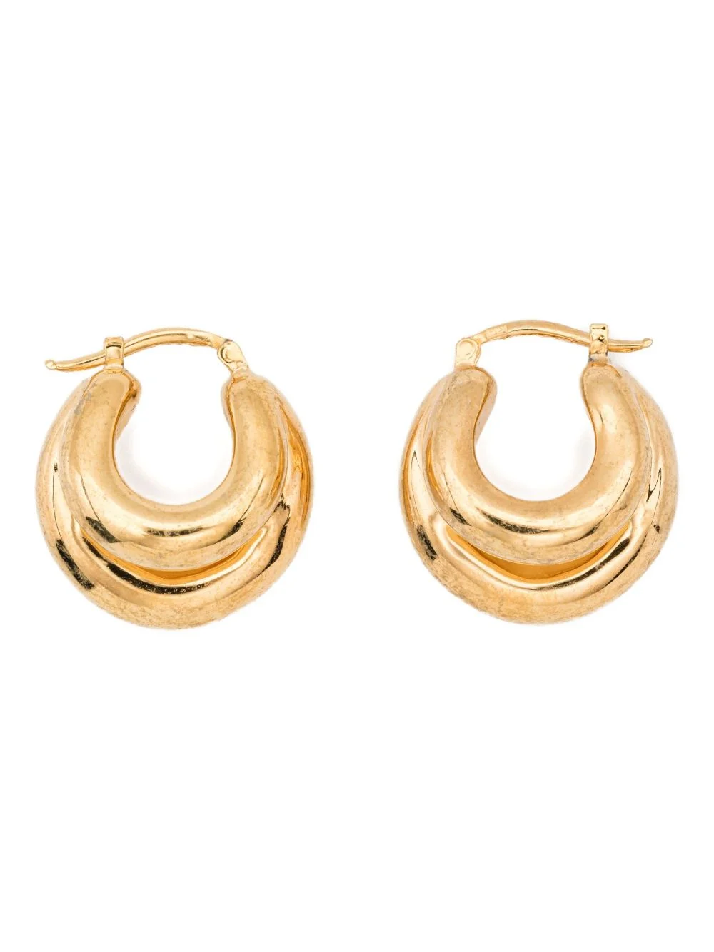 chunky hoop earrings Highlights - Gold-tone - Hoop design - Double band - Clasp fastening - These earrings come as a pair. - Normal everyday use and external agents may reduce the lustre of gemstones and gold surfaces. to maintain, use specific, non-abrasive products specially meant for cleaning jewellery. Made in Italy SIZE & FIT Model measurements Height 5 ft 9 in(1.75 m) Bust/Chest 34.64 in(88 cm) Hips 36.61 in(93 cm) Waist 26.37 in(67 cm) Measurement WIDTH 0.78 in(2 cm) HEIGHT 0.98 in(2.5 cm)