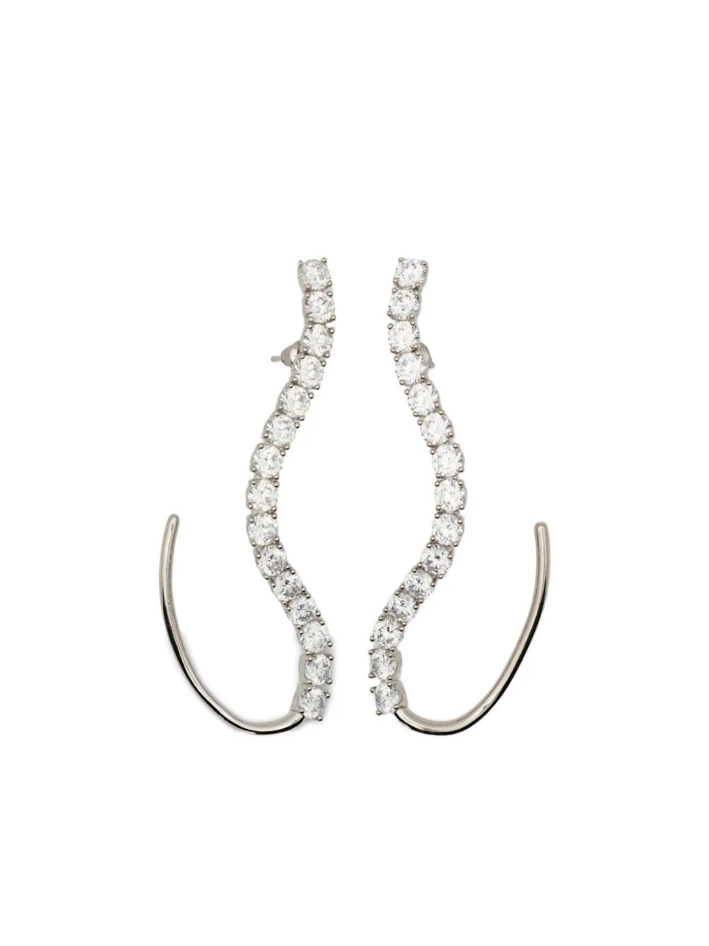 curved-effect earrings Highlights - Silver - Glass-crystal embellishments - Curved design - Post-back fastening - Linear arrangement - These earrings come as a pair. - Normal everyday use and external agents may reduce the lustre of gemstones and gold surfaces. to maintain, use specific, non-abrasive products specially meant for cleaning jewellery. Made in Italy SIZE & FIT Model measurements Height 5 ft 9 in(1.75 m) Bust/Chest 34.64 in(88 cm) Hips 36.61 in(93 cm) Waist 26.37 in(67 cm)