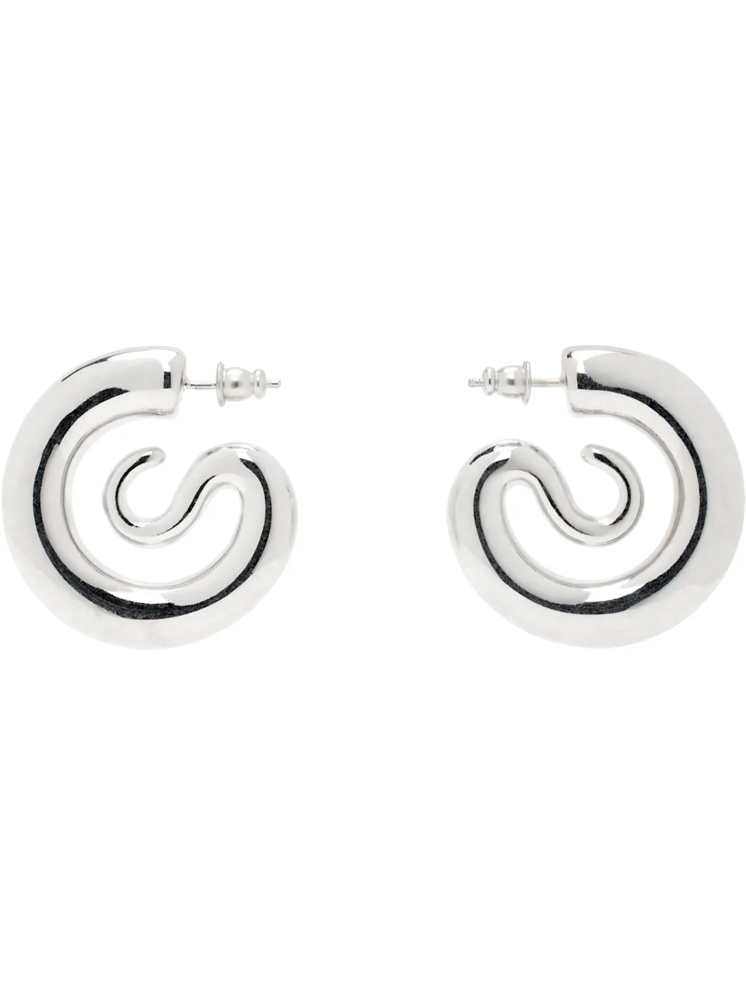 Pair of open hoop earrings in rhodium-plated copper. · Post-stud fastening · D1.25" Supplier color: Copper/Silver Rhodium, copper. Made in Italy 251340F022009