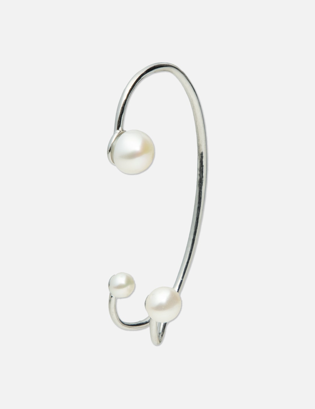 - Panconesi - Three Point Perla Cuff - Made of sterling silver 925 - Pearls embellishment - Sold as single - Made in Italy - Color: Silver - Country Of Origin: IT - Material: Sterling Silver 925, Pearl - See more Earrings, Jewelry and Accessories SIZING Approximate dimensions: - 3 x 6cm
