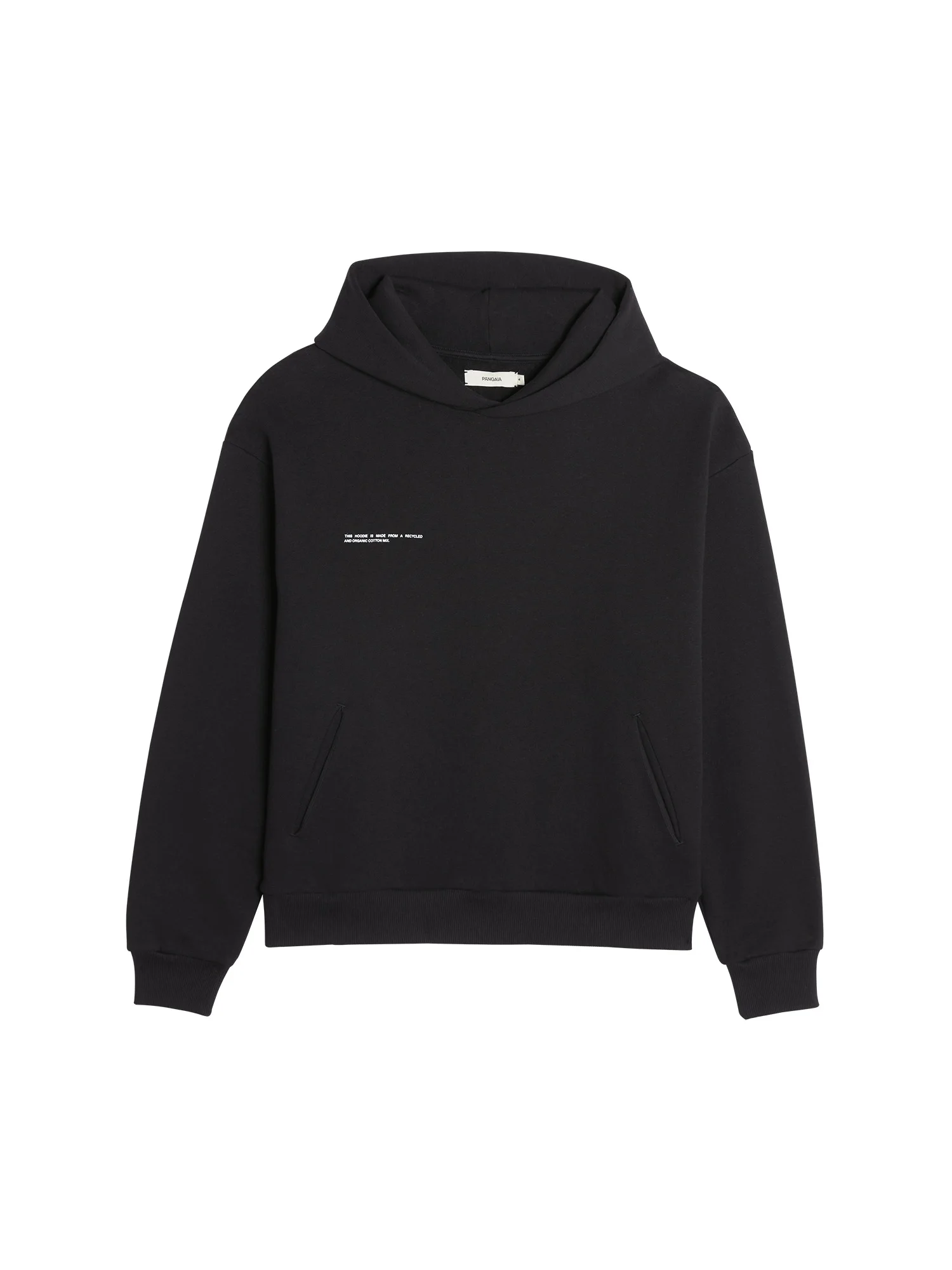 THE PANGAIA 365 HEAVYWEIGHT HOODIE IN BLACK IS MADE FROM 50% ORGANIC COTTON AND 50% RECYCLED COTTON. TREATED WITH PPRMNT™ FOR ANTI-ODOR PROPERTIES, HELPING KEEP YOUR HOODIE FRESHER FOR LONGER. THE HEAVYWEIGHT FABRIC AND BRUSHED INTERIOR PROVIDE A STRUCTURED SHAPE AND SOFT FEEL. THIS GENDERLESS HOODIE PROVIDES WARMTH AND DURABLE COMFORT FOR YEAR-ROUND WEAR.