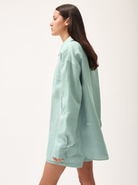Womens DNA Aloe Linen Collared Long Sleeve Shirt - Eucalyptus Blue