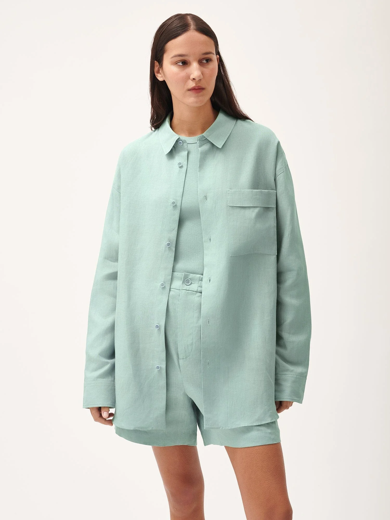 THIS SHIRT IS MADE FROM 100% LINEN AND IS TREATED WITH ALOE VERA OIL. DISCOVER A LIGHTER, CRISPER TAKE ON LINEN AS SUMMER-INSPIRED HUES, A SUPER SOFT HANDFEEL AND A UNIQUE POCKET DETAIL COME TOGETHER TO CREATE THE ULTIMATE WARM WEATHER STAPLE.