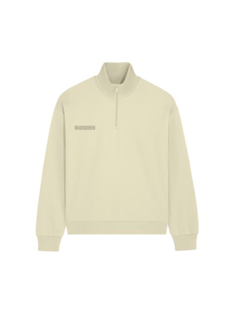 UPGRADE YOUR CASUAL WARDROBE WITH THE PANGAIA DOUBLE JERSEY HALF-ZIP SWEATSHIRT IN STONE. THIS SWEATSHIRT OFFERS A COMFORTABLE, RELAXED FIT WITH THE VERSATILITY OF A HALF-ZIP DESIGN, MAKING IT PERFECT FOR LAYERING OR WEARING ON ITS OWN.