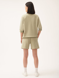 THESE GENDER-NEUTRAL SHORTS ARE MADE FROM A BLEND OF ORGANIC AND RECYCLED COTTON, COMBINED WITH LYCRA® ECOMADE FOR ADDED STRETCH AND COMFORT. THEY’RE THE PERFECT SEASONAL PIECE, DESIGNED TO BE PAIRED PERFECTLY WITH OUR MATCHING DNA DOUBLE JERSEY TOP.