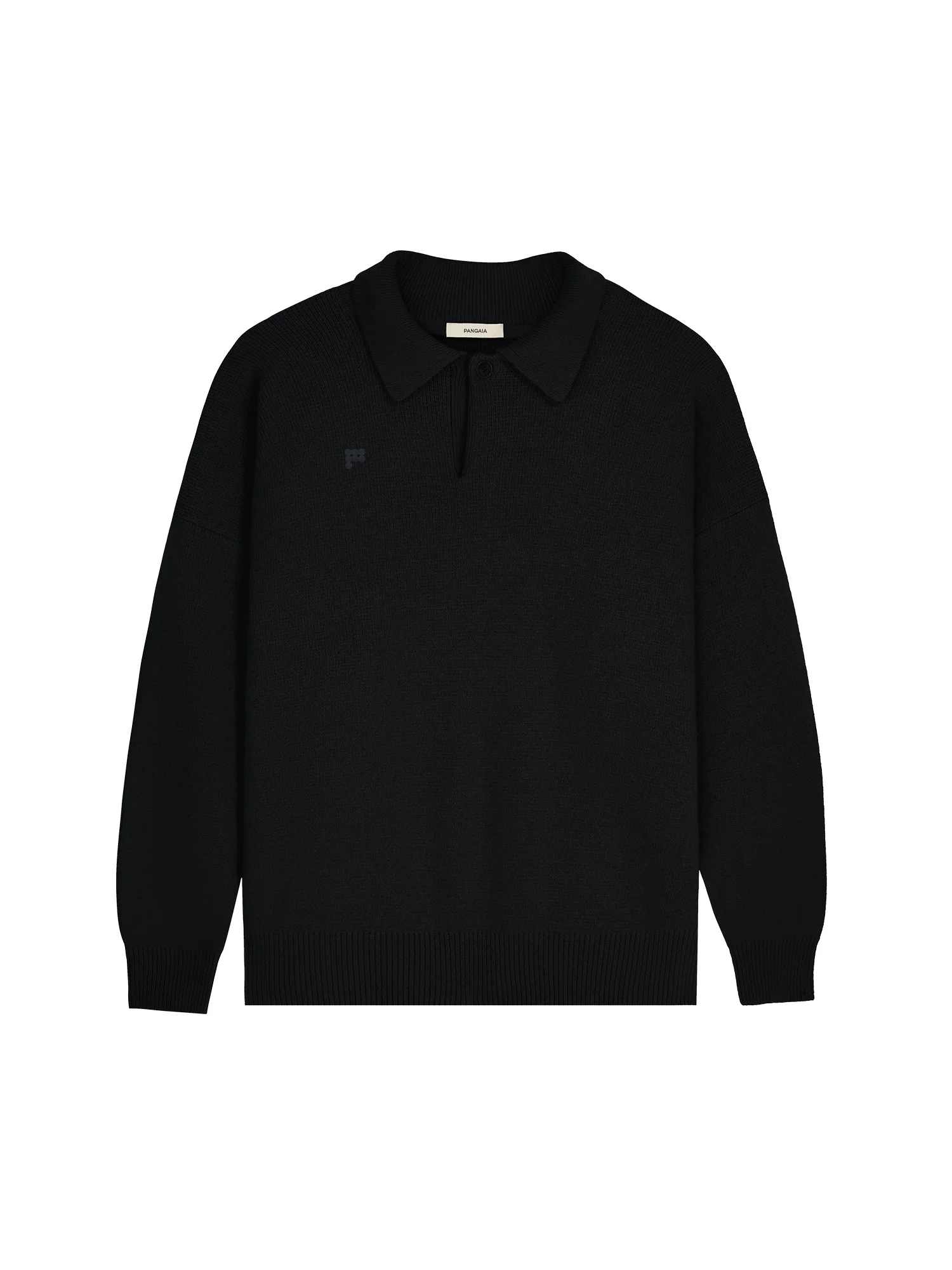 ADD A TOUCH OF ELEGANCE TO YOUR WARDROBE WITH THE PANGAIA RECYCLED CASHMERE POLO SWEATER IN BLACK. MADE FROM A BLEND OF RECYCLED CASHMERE, THIS SWEATER OFFERS LUXURIOUS SOFTNESS AND A SOPHISTICATED STYLE THAT’S PERFECT FOR ANY OCCASION.