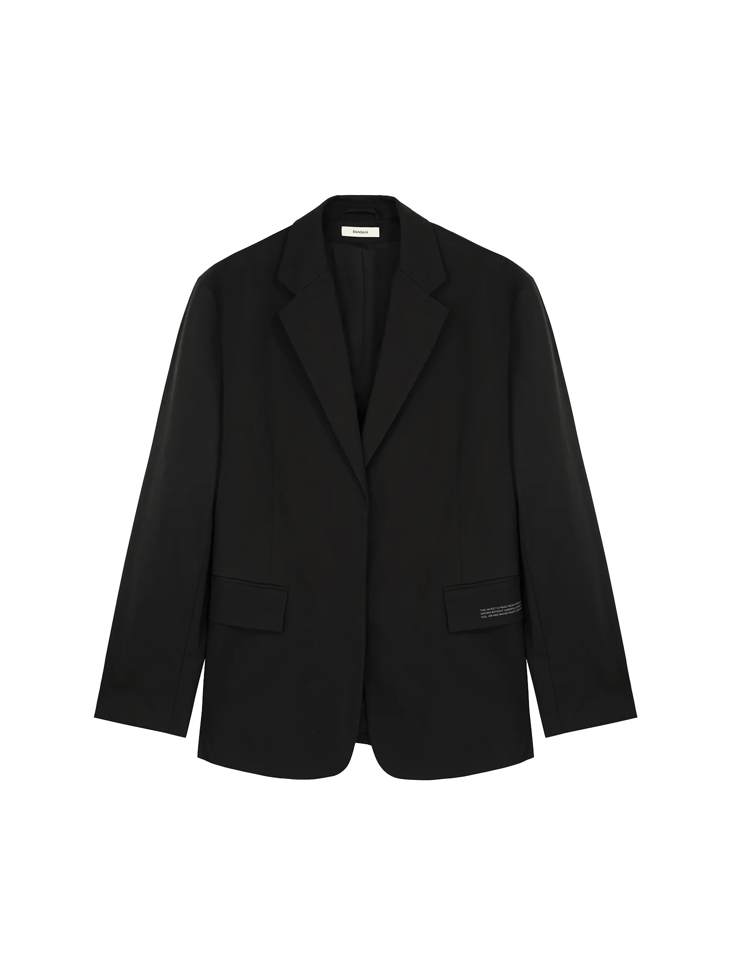 THE PANGAIA WOMEN’S COTTON OVERSIZED TAILORED BLAZER IN BLACK IS MADE FROM COTTON AND LINED WITH CUPRO, OFFERING A VERSATILE AND STRUCTURED FIT. THIS BLAZER COMBINES A TAILORED LOOK WITH EVERYDAY COMFORT, MAKING IT A VERSATILE WARDROBE STAPLE.