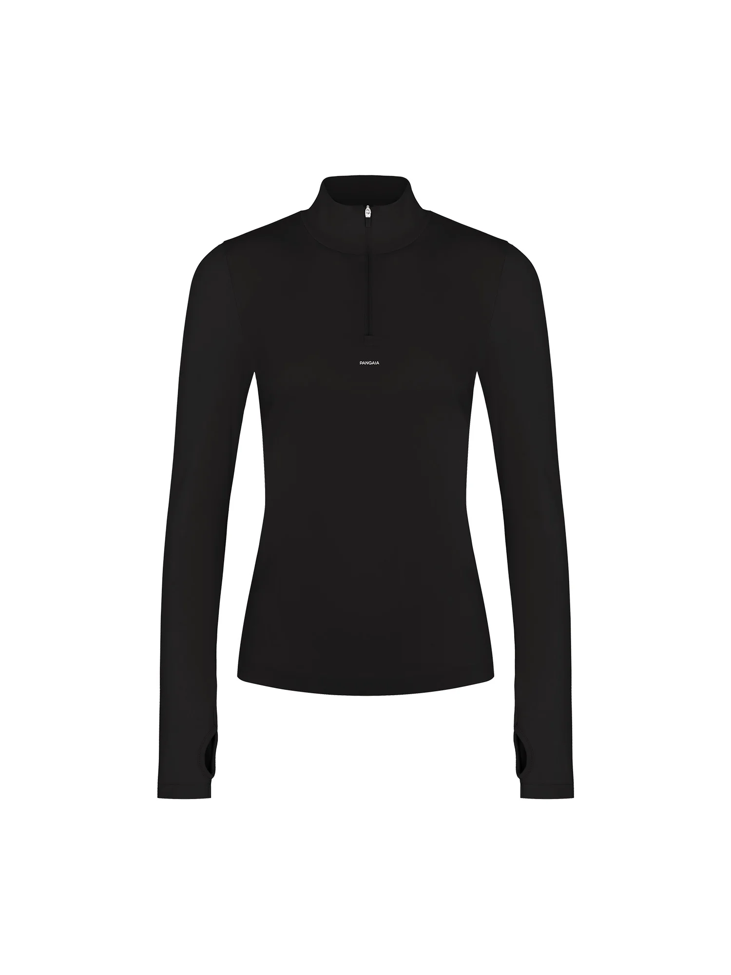 Activewear that cares. Expertly crafted from EVO® Nylon and regen™ BIO Max elastane, the Plant-Stretch Zipped Long Sleeve Top in Black offers a stretchy staple with a lightweight feel, an ultra-close fit and a breathable, fast-drying finish. Designed as a high-performance alternative to fossil fuel-based synthetics, this thermoregulating style was treated with PPRMINT™ oil to help keep it fresher for longer. Material: 97% EVO® Nylon by Fulgar (100% biobased content) 3% regen™ BIO Max elastane by Hyosung (98% biobased content) 99% plant-basedFit: An ultra-close, second-skin fitFeel: Lightweight and breathableDesigned for: Year-round wear Details: Funnel neck, long sleeves, thumbholes and a front zip fasteningMade in: Portugal