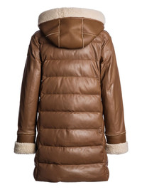 Demi Special quilted leather coat Highlights - Brown - Leather - Quilted design - Hooded neckline - Shearling trim - Snap button fastening Imported Composition Lining: Recycled Polyamide 100%, Polyester 100% Outer: Sheepskin 100%, Lamb Shearling 100% Washing instructions Do Not Wash/Do Not Dry Clean