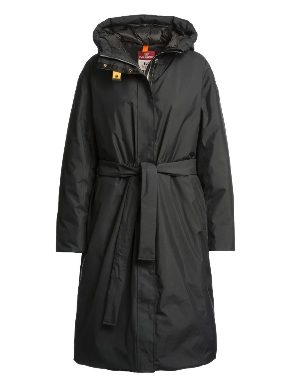 hooded belted coat Highlights - Black - Hooded - Belted waist - Long sleeves - Front fastening - Straight hem Imported Composition Outer: Polyamide 70%, Polyester 30% Lining: Polyamide 100%, Duck Down 90%, Duck Feathers 10% Washing instructions Read Manufacturer Guidelines