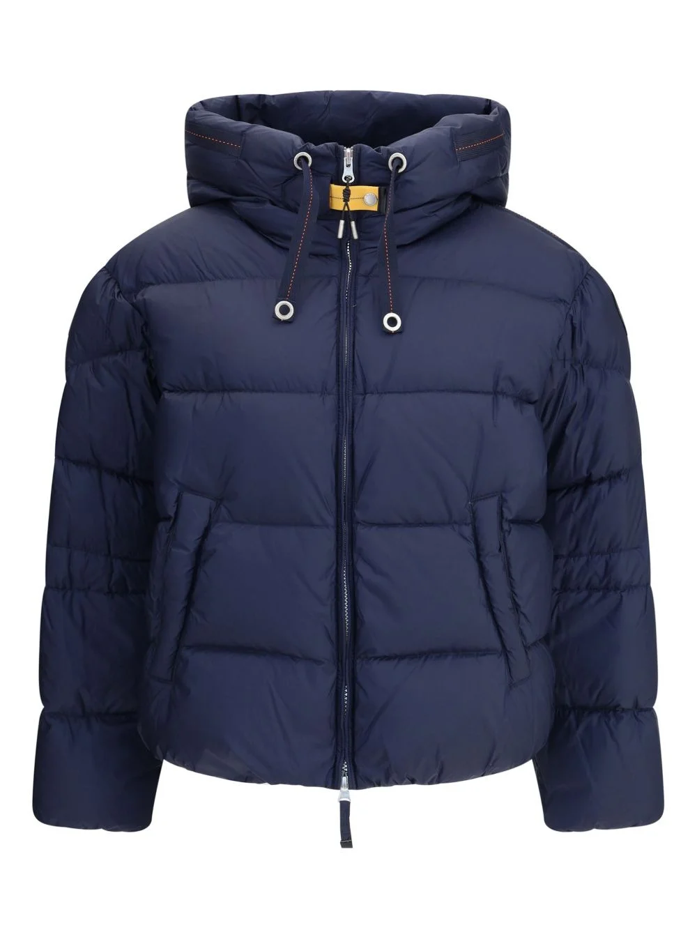 hooded quilted down jacket Highlights - Navy blue - Quilted design - Hooded neckline - Drawstring hood - Front zip fastening - Long sleeves Imported Composition Outer: Polyamide 100% Lining: Duck Down 100%, Polyamide 100% Washing instructions Read Manufacturer Guidelines