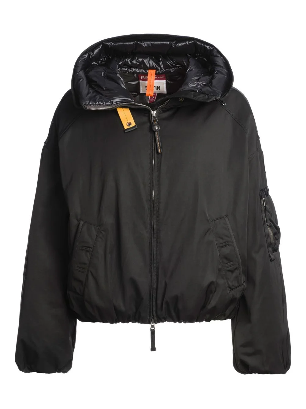 hooded drawstring jacket Highlights - Black - Drawstring hem - Hooded neck - Zip fastening - Welt pockets Imported Composition Lining: Recycled Polyamide 100%, Duck Down 90%, Duck Feathers 10% Outer: Polyester 65%, Cotton 35% Washing instructions Machine Wash