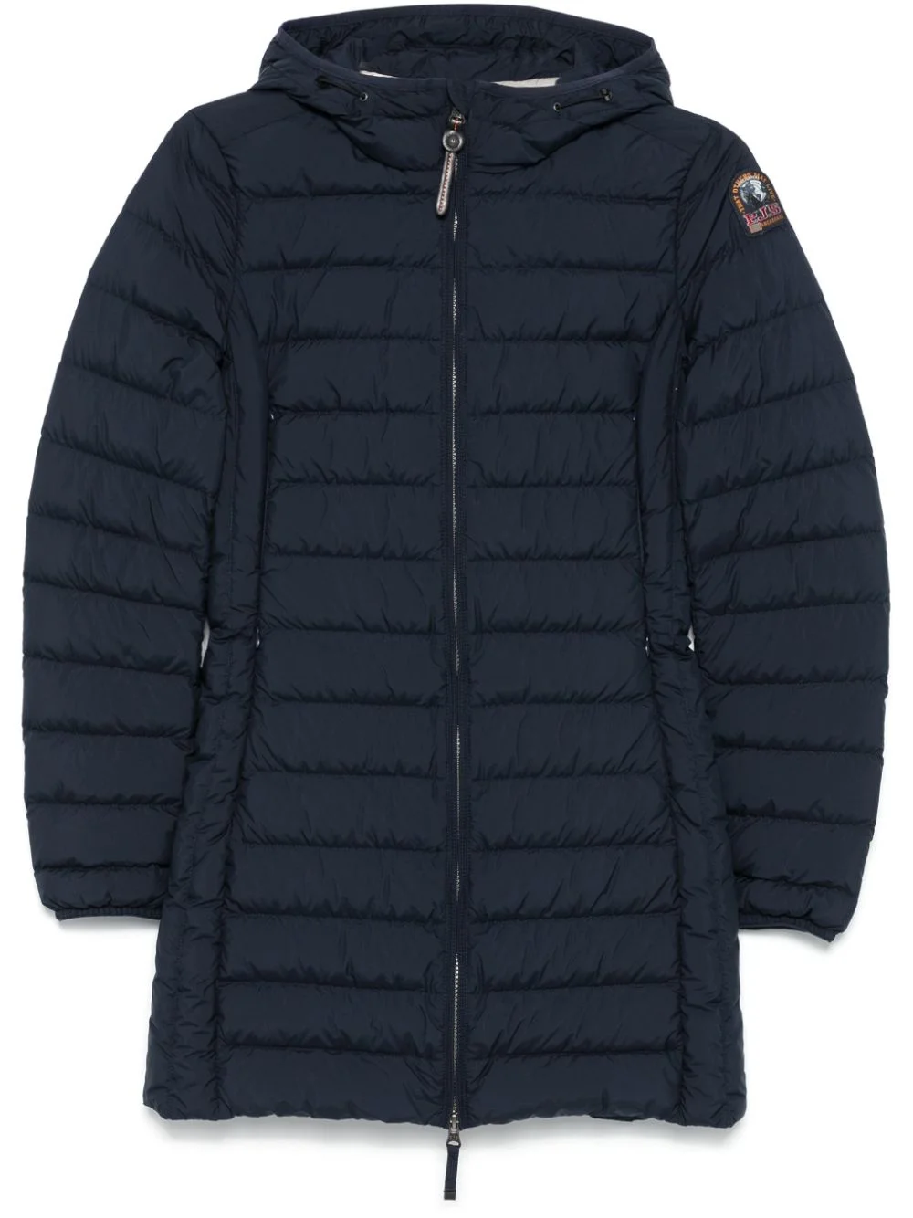 Irene jacket Highlights - Navy blue - Duck down - Padded design - Front two-way zip fastening - Drawstring hood - Logo patch at the sleeve - Long sleeves - Two side zip-fastening pockets - Full lining - Straight hem Imported Composition Lining: Polyester 100%, Duck Down 90%, Duck Feathers 10% Outer: Polyester 100% SIZE & FIT Model measurements Height 5 ft 10 in(1.78 m) Bust/Chest 32.67 in(83 cm) Hips 35.43 in(90 cm) Waist 23.22 in(59 cm) FittingInformation Designed for a slim fit that sits just away from the body offering a close yet comfortable fit Made from a padded non-stretch fabric, giving it no natural elasticity