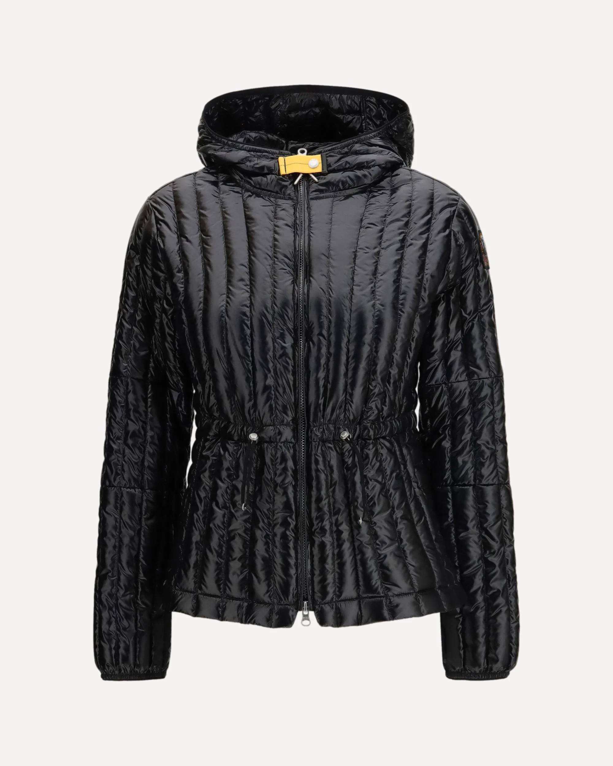 The Kuon Light short down Jacket by Parajumpers delivers a contemporary approach to outerwear, balancing lightness and functionality. Crafted from semi-gloss recycled nylon taffeta with a water-repellent finish, it features a padded construction designed for transitional seasons. The silhouette is defined by a front double-slider zip closure, a hood and cuffs trimmed with lycra for enhanced comfort. Zipped front pockets and an adjustable drawstring waist add practical versatility, while the logo patch on the sleeve and the iconic yellow neck tape provide a distinctive signature touch. DETAILS - Sku: 26SMPWPUIP33_0541 - Season: SS26 - Fit: Regular - Composition: GENERAL 100% Nylon - MADE IN CHINA