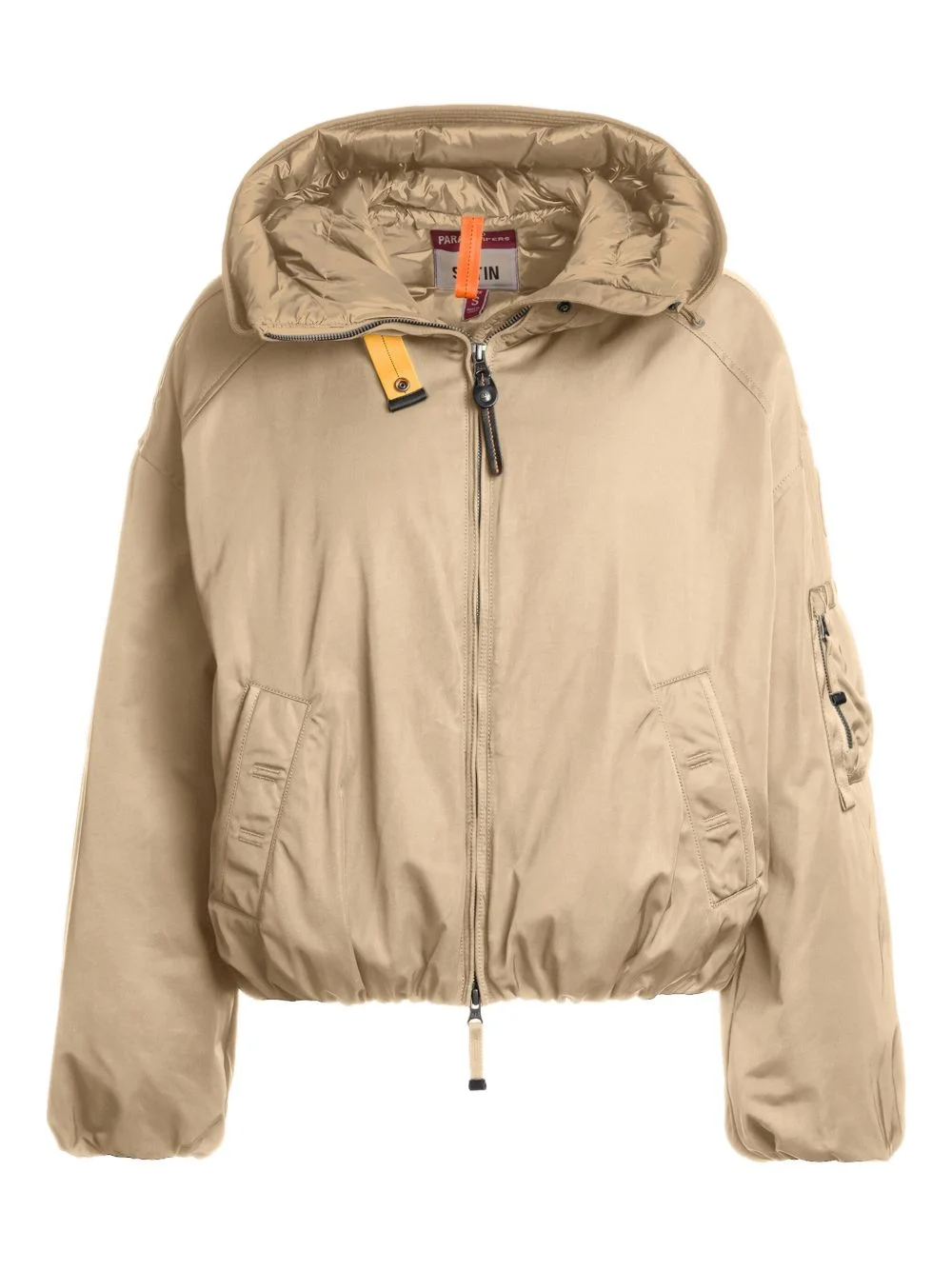 Naadz hooded bomber jacket Highlights - Beige - Zip fastening - Hooded neck - Long sleeves - Welt pockets Imported Composition Outer: Polyester 65%, Cotton 35% Lining: Recycled Nylon 100%, Duck Down 90%, Duck Feathers 10% Washing instructions Read Manufacturer Guidelines