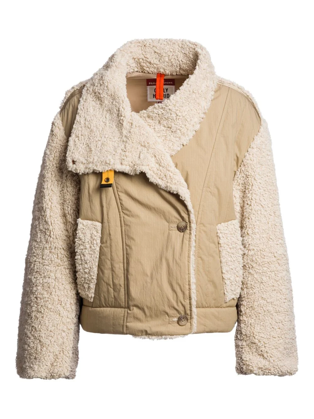 paneled jacket Highlights - Beige - Teddy-fleece sleeves - Snap button fastening - Asymmetric zip closure - Welt pockets Imported Composition Outer: Polyester 100%, Cotton 61%, Polyamide 39% Lining: Recycled Polyester 100% Washing instructions Machine Wash