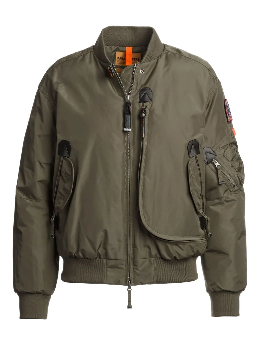 pocket-detail bomber jacket Highlights - Olive green - Multiple pockets - Zip fastening - Ribbed cuffs - Elasticated waistband - Branded patch Imported Composition Fabric 100% Washing instructions Read Manufacturer Guidelines