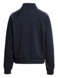 stripe-detail zip-up jacket Highlights - Navy blue - Zip fastening - Ribbed cuffs - High neck - Raglan sleeves - Stripe detail Imported Composition Cotton 74%, Polyester 20%, Elastane 6% Washing instructions Read Manufacturer Guidelines