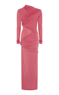 Matte Jersey PRODUCT DETAILS - Resort '26 - Slim fit, high rounded neckline with long sleeves, wrapped detailing throughout, sheath silhouette maxi - Unlined - Composition: 92%Polyester 8%Spandex - Slip On - *Dry clean only - Made in New Zealand