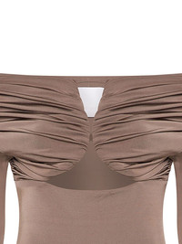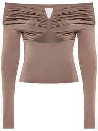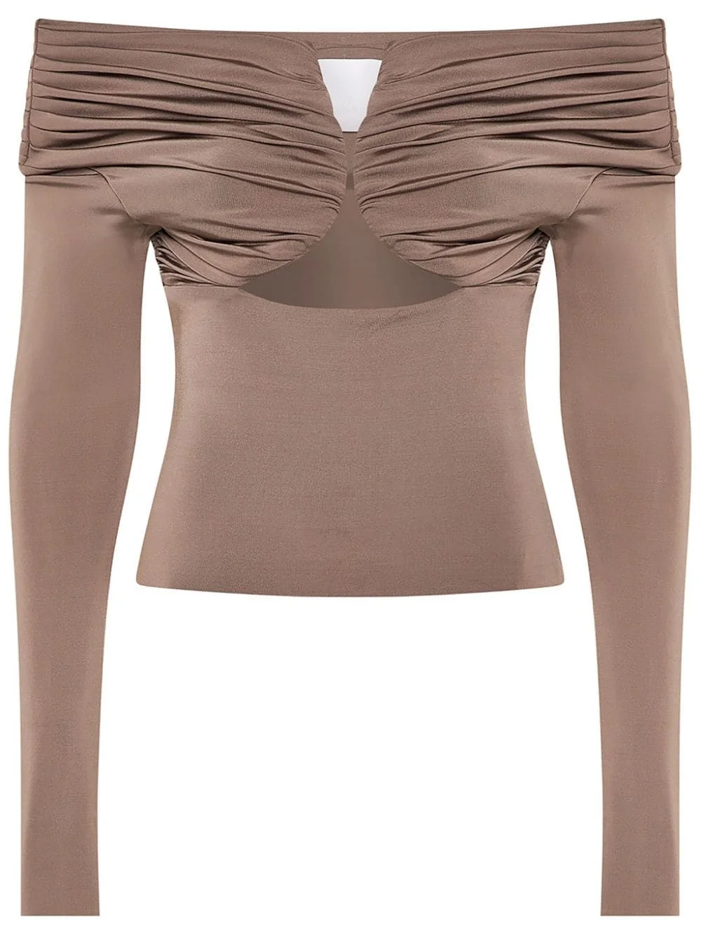 Axel top Highlights - Brown - Stretch-design - Satin finish - Ruched detailing - Cut-out detailing - Off-shoulder - Long sleeves - Straight hem Imported Composition Viscose 93%, Spandex/Elastane 7%